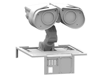 This image shows the part moving in 3 dimensions. For example, if both servos rotated in sync and mirrored, it would tilt the head up or down. If one moved instead of the other or different amounts, it would start rotating and tilting at the same time. Of course in the final design, instead of the linkages, there will be a rod end and a threaded rod connecting the servo arm and the ball and socket joint on the bottom.